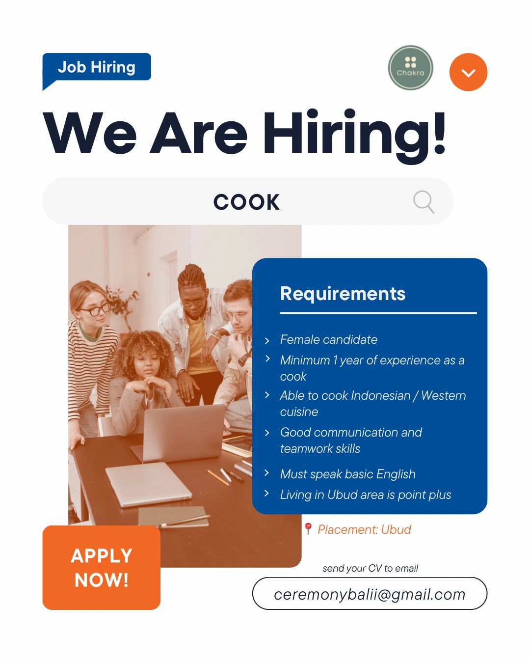 Dibutuhkan segera COOK untuk Chara di Ubud, Bali.