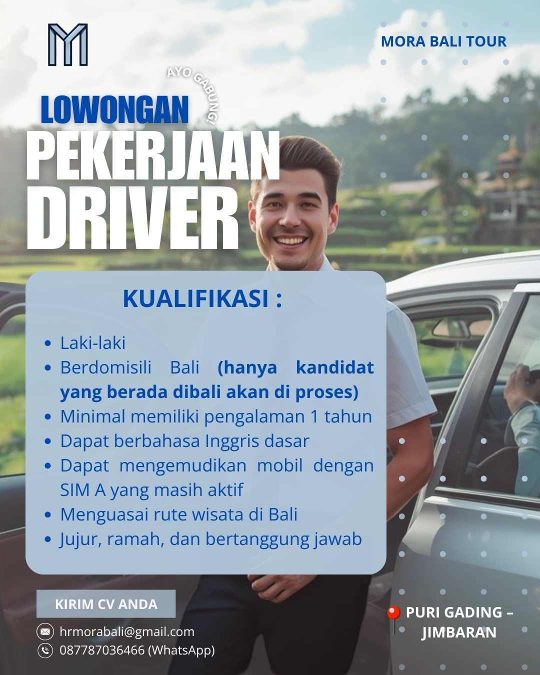 Dibutuhkan Segera Driver untuk Mora Bali Tour di Jimbaran, Bali