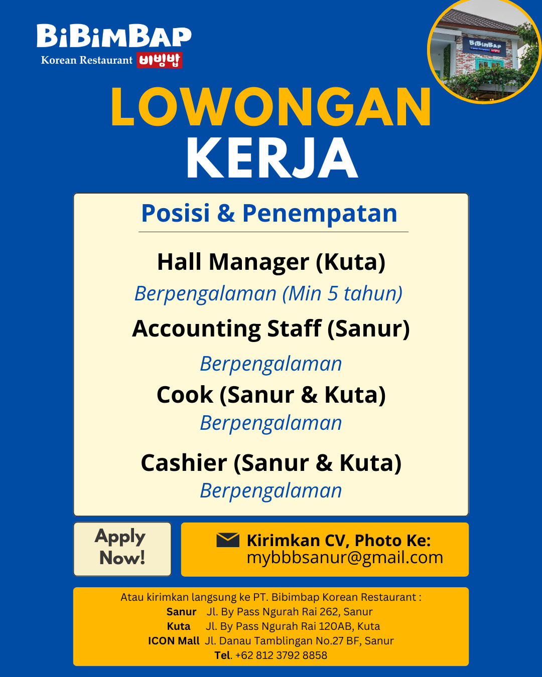 Kirimkan cv dan lamaran anda ke Email yg tertera pada gambar.
