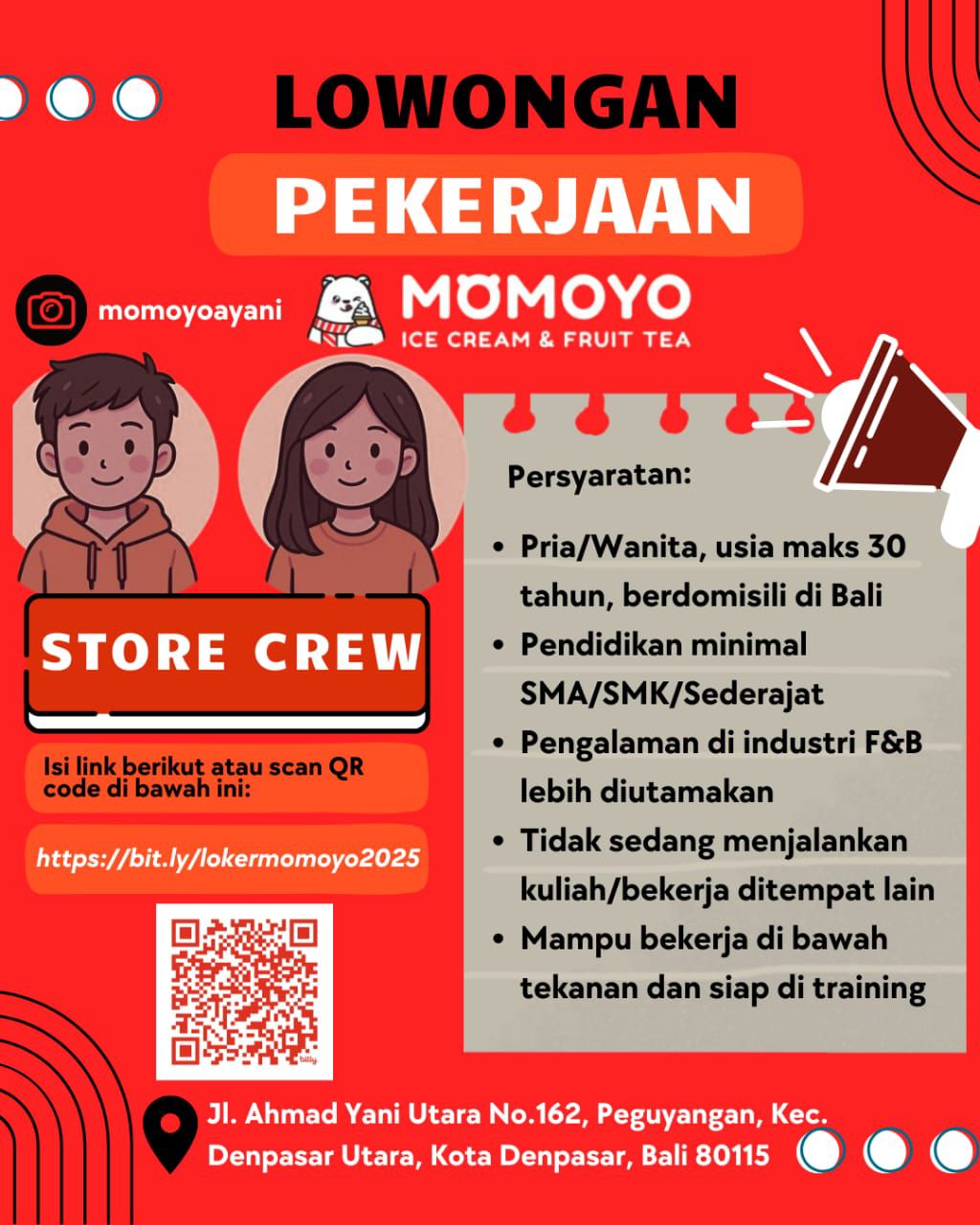 Lowongan Kerja Sebagai Store Crew untuk Momoyo Ayani Penempatan di Denpasar
